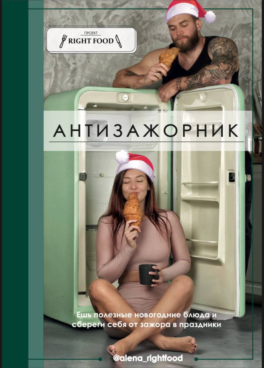 Приобрести гайд «АНТИЗАЖОРНИК», который поможет тебе сохранить фигуру в праздники, не уйти в зажор и приготовить полезные и вкусные новогодние блюда