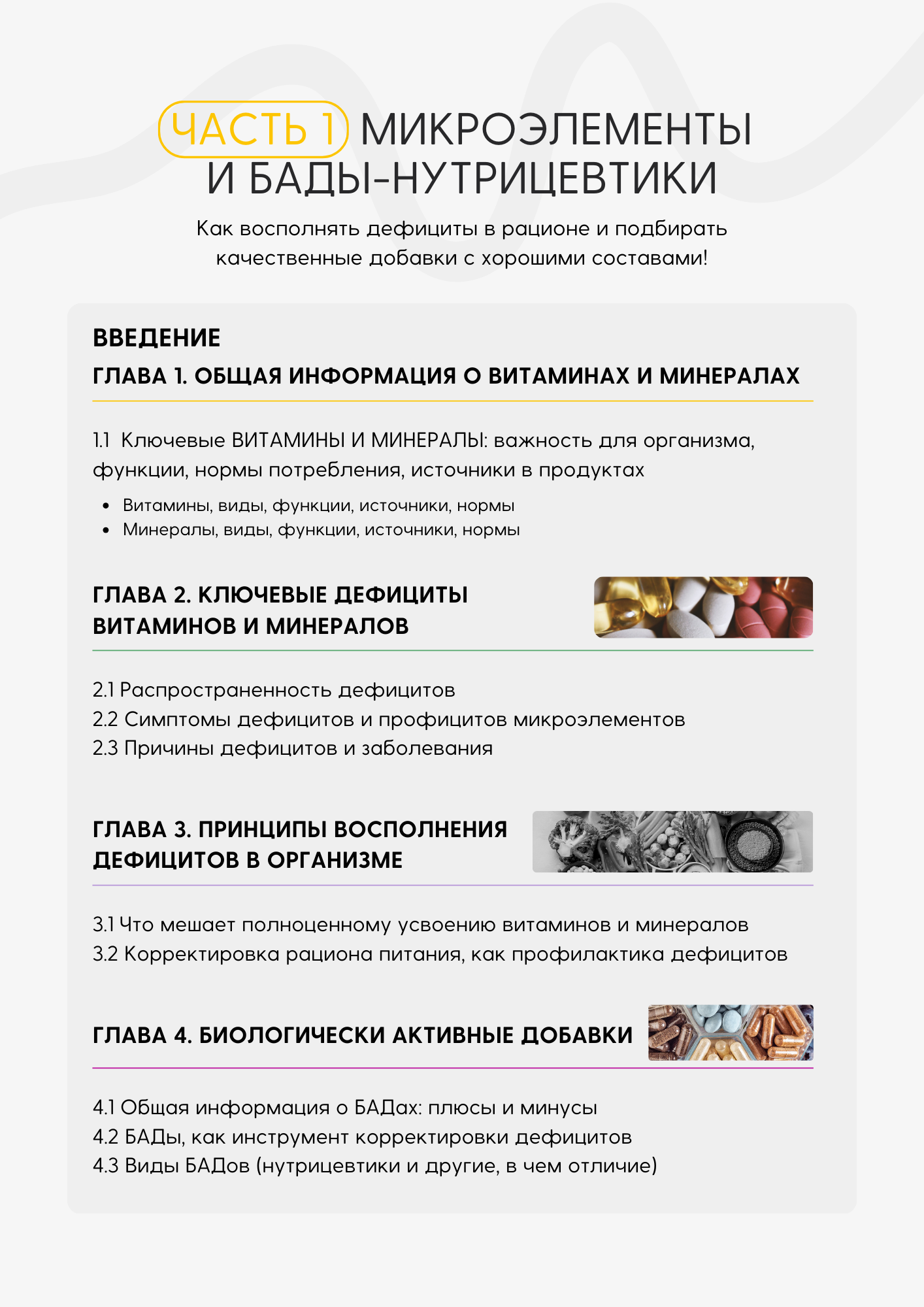Первая часть будет включать в себя всю информацию о микроэлементах и БАДах: