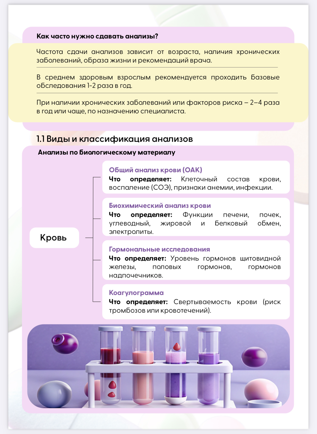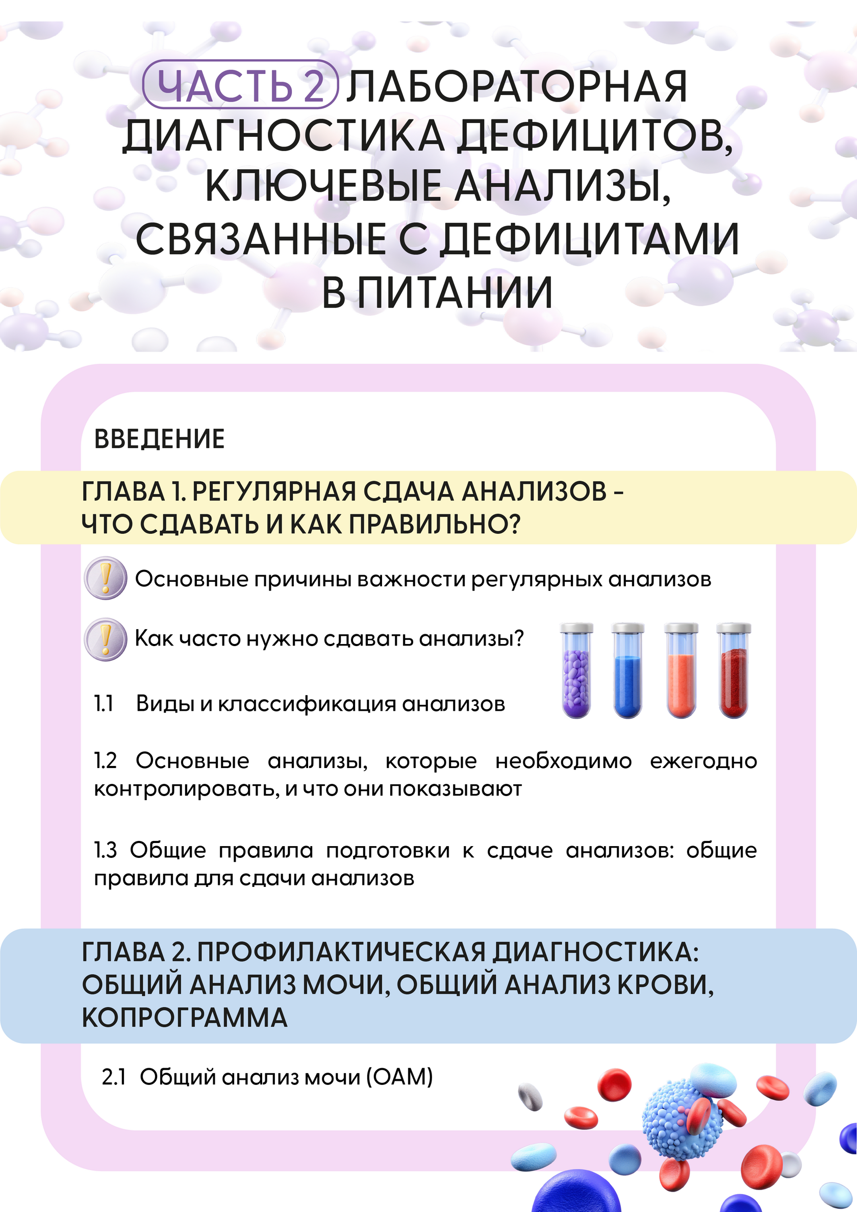 Вы поймете, какие анализы нужно регулярно сдавать и о чем говорят референсные значения, какие принципы диагностики дефицитов и возможных заболеваний, и как с помощью питания и БАДов корректировать свой рацион и регулировать состояние здоровья и тела
